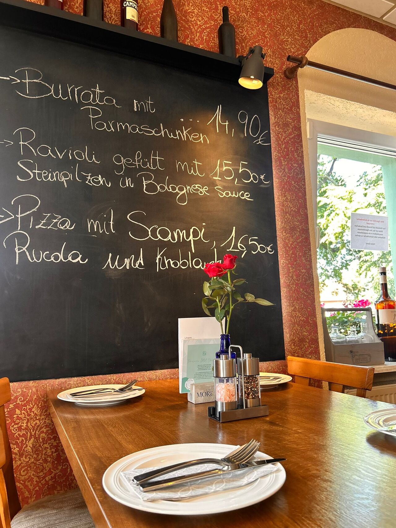 Keine Lust zu kochen? Bei uns bekommen sie feinste italienische Küche serviert. Zu unseren Einrichtungen gehören Außengastronomie, Klimaanlage und Parkplätze. Organisieren Sie eine Veranstaltung? Wir bieten Ihnen tolle Möglichkeiten, Ihr Erlebnis zu bereichern. Wir möchten, dass sich jeder, unabhängig von seinen Bedürfnissen, bei uns wohlfühlt. Deshalb ist unser Restaurant leicht zugänglich. Dank der eigenen Kinderecke wird Ihren Kindern nie langweilig. Haustiere sind bei uns herzlich willkommen. Für Raucher steht ein eigener Raucherbereich zur Verfügung. Zur Bezahlung stehen Ihnen verschiedene Zahlungsmöglichkeiten zur Verfügung. Zögern Sie nicht, uns zu kontaktieren, um einen Tisch zu reservieren.